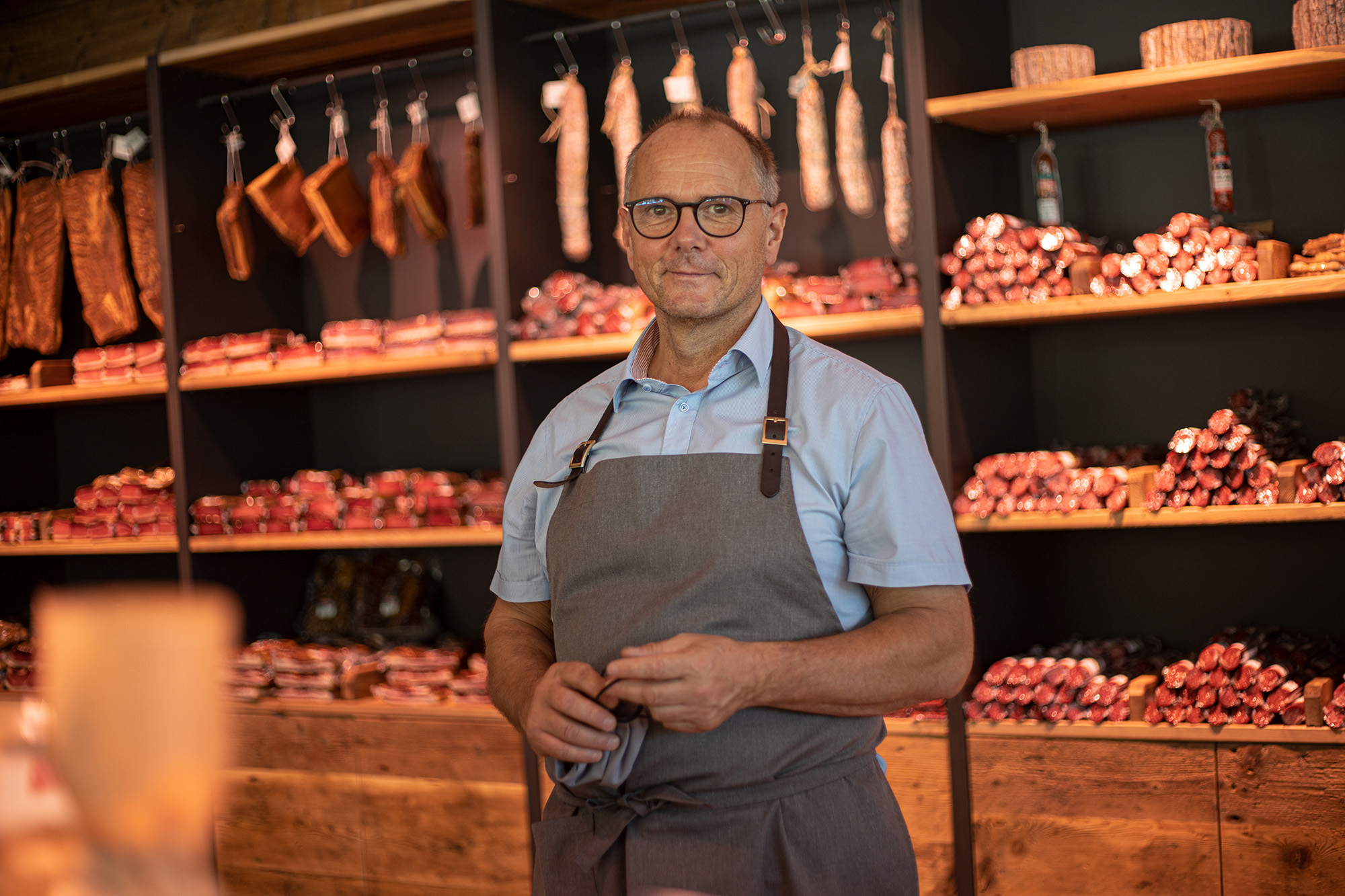 Die Fenchelsalami der Metzgerei Rinner ist ein Naturprodukt, das in Handarbeit hergestellt wird. Diese einzigartige und vielseitige Salami wird aus hochwertigem Schweinefleisch gewonnen. Nach mindestens vier Wochen Lufttrocknung wird die Fenchelsalami gewaschen, geschnitten und verpackt. Die Oberfläche ist rotbraun und trocken, beim Anschnitt zeigt sich in der kräftigen Farbe mit deutlichen Fetteinschlüssen, was ein eindeutiges Qualitätsmerkmal ist. Die Fenchelsalami eignet sich hervorragend zum Aperitif auf der kalten Platte, aber auch zum Verfeinern von Nudelsaucen, oder einfach im Jausenbrot. Auch zu Schafskäse oder rustikalem Brot passt sie wunderbar und Sellerie, der die Frische der Fenchelsamen widerspiegelt.