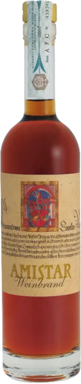 Der Amistar Weinbrand von Peter Sölva aus Kaltern in Südtirol wird nach traditioneller Methode aus den besten Amistar-Weinen destilliert und anschließend für viele Jahre in kleinen Eichenfässern gereift. Diese lange Fasslagerung verleiht ihm seine tiefgoldene Farbe mit bernsteinfarbenen Reflexen sowie eine bemerkenswerte aromatische Fülle. In der Nase entfaltet er intensive Noten von getrockneten Früchten, Rosinen und Pflaumen, begleitet von feiner Vanille, Röstaromen und einem Hauch Tabak. Am Gaumen zeigt er sich weich, rund und ausgewogen, mit harmonischer Balance zwischen Frucht, Würze und dezenten Holznoten. Der lange, elegante Abgang wird von einer angenehmen Wärme getragen und spiegelt die Vielschichtigkeit des Destillats wider. Ein edler Digestif, der pur genossen seine volle Klasse entfaltet, aber auch in Kombination mit einer Zigarre oder dunkler Schokolade seine Stärken zeigt.