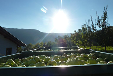 Auf 1.000 Metern, an den Südhängen des Etschtales in Vöran, liegt der Obst-...