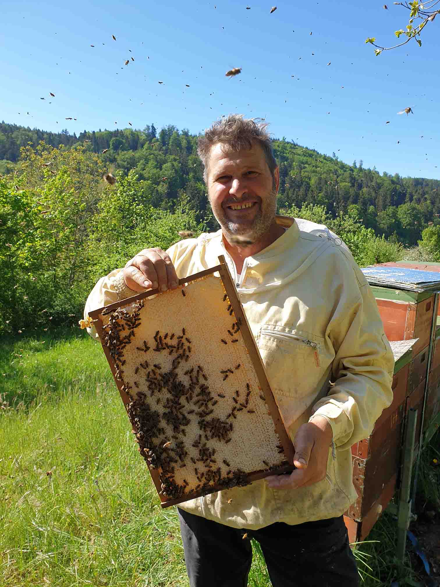 Wolfgang Pichler non è estraneo alla creatività e alla sperimentazione, come si può vedere dall'etichetta del suo miele! Il lavoro al maso Bachguthof è ispirato dall'interazione tra l'uomo, l'ape e la pianta, ed è così che si crea delizie naturali.