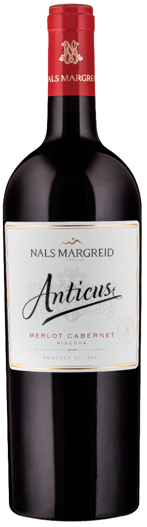 Il Südtirol Merlot Cabernet DOC Riserva Anticus Nals è un vino rosso elegante e complesso, prodotto nella regione del Alto Adige, una zona nota per i suoi vini di alta qualità. Questo blend di Merlot e Cabernet Sauvignon matura per un periodo prolungato in botti di legno, acquisendo aromi ricchi di frutti rossi maturi, spezie dolci e leggere note di vaniglia e tostatura. Al palato si presenta corposo, con tannini morbidi e un perfetto equilibrio tra freschezza e struttura. Il finale è lungo e armonioso. Un vino ideale per accompagnare piatti a base di carne, arrosti, formaggi stagionati o per essere gustato da solo in occasioni speciali. Un'eccellenza della cantina Nals Margreid, che esprime al meglio il carattere del terroir altoatesino.