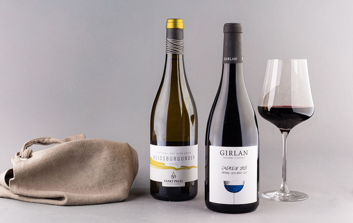 3 + 3 = straordinario! Un vero gioiellino della Cantina Girlan e il suo vicino a bacca bianca di S. Paolo si incontrano per un rendez-vous. I due Vini dell’Anno 2025 non conquistano solo per l’eccellente rapporto qualità-prezzo! Il Lagrein dal colore rosso rubino è intenso e vellutato al palato e con un’acidità ben integrata, mentre il meraviglioso Pinot Bianco dalla veste giallo chiaro è succoso al palato, con una freschezza immediata e un finale minerale.